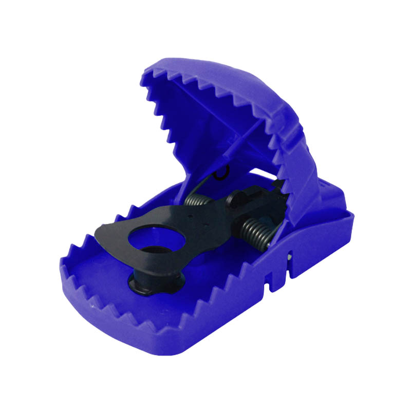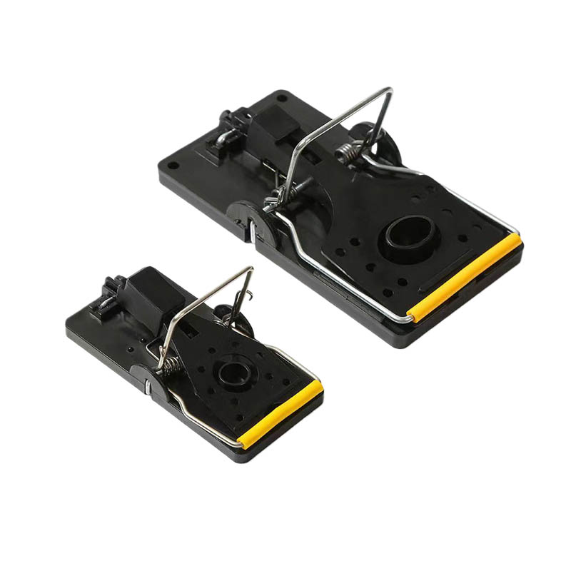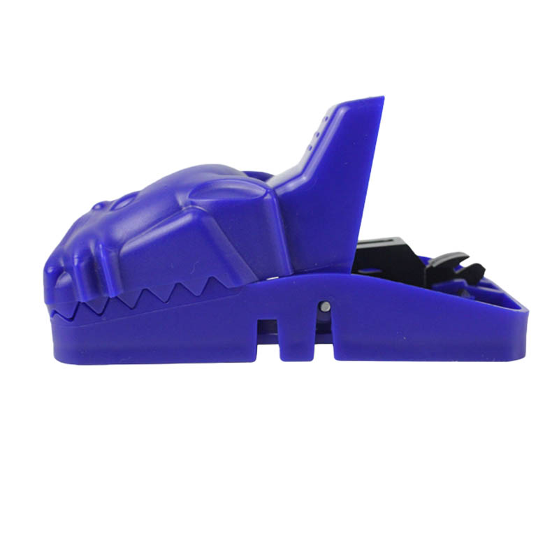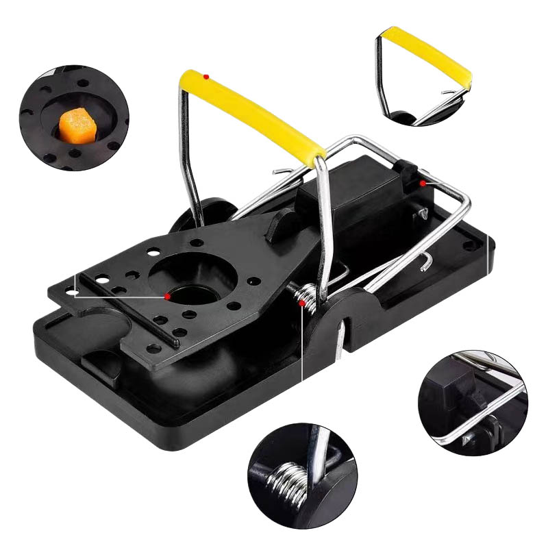 plastic mousetrap . When a mouse is nearby, even with the slightest touch, this device quickly senses and triggers a powerful spring. Instantly, the steel teeth close at an extremely fast speed, like a suddenly tightening net, trapping the mouse firmly and ensuring a one-hit kill, leaving it no chance of escape. This highly efficient capture mechanism greatly improves the success rate of catching mice, providing users with a powerful solution to their mouse problems.